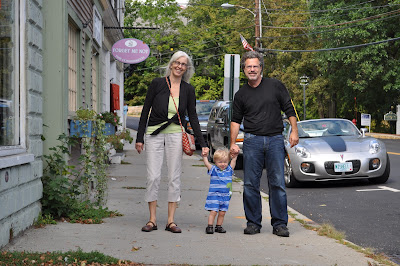 Grandma Susie and Grandpa Ed with Ethan. (Ethan's future ride is in the background.) |