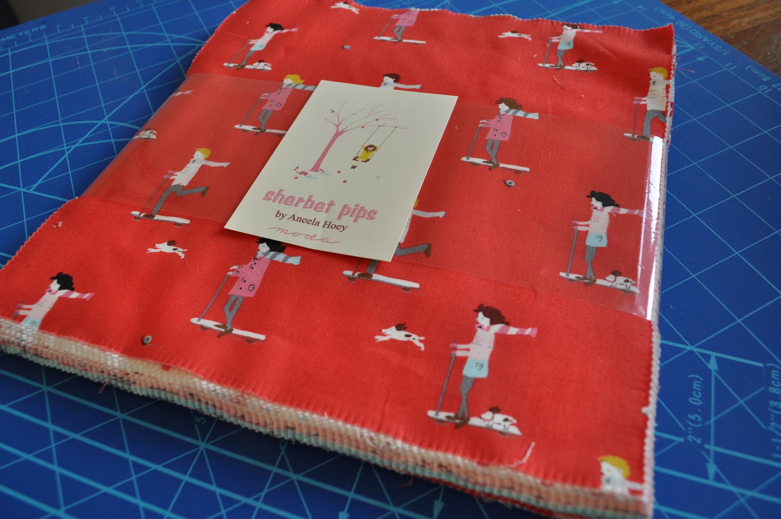 I had so much fun making this little vest. I plan to make a few dresses next. I participated in Sew, Mama, Sew's giveaway day and look what I won! A Sherbet Pips layer cake from Annela Hoey (the fabric designer) herself! I started jumping up and down with excitement when Annela emailed me with the good news. This line won't be released until spring, so it is especially fun to have the fabrics in my hot little hands. Thank you, Annela, for the gorgeous bundle of fabrics and for your generous giveaway. I am a huge fan of your quilts and fabric line!