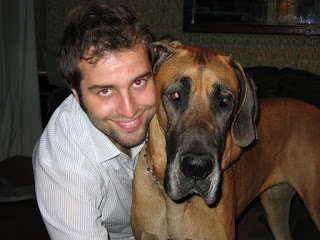Aaron, Chase, and I were on the way to the dog park when we met a woman who was trying to catch her neighbor's dog, Bella Donna, who escaped. We jumped in the car and joined the chase. The great dane (who is very skittish) weaved through neighborhoods and then headed down to a four lane highway by our house. Aaron and I were afraid for this pup's life, so Aaron hopped out of the car and started running after the dog on foot, in the median of this busy road! Aaron chased the pup for a couple of miles when he was picked up by a friendly dog-lover named Michaela who flipped a U-turn to help save Bella Donna. Aaron, Michaela, and four other cars who were following by this time, were able to corral Bella and finally catch her. We called the vet this morning and got into contact with Bella's owners, who were very happy to get their pup back. I am so proud of my husband, the hero!